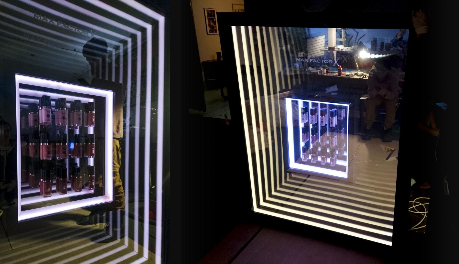 Commissioned by Electrify agency, this mirror was produced for the launch event of a new foundation by makeup company Max Factor.